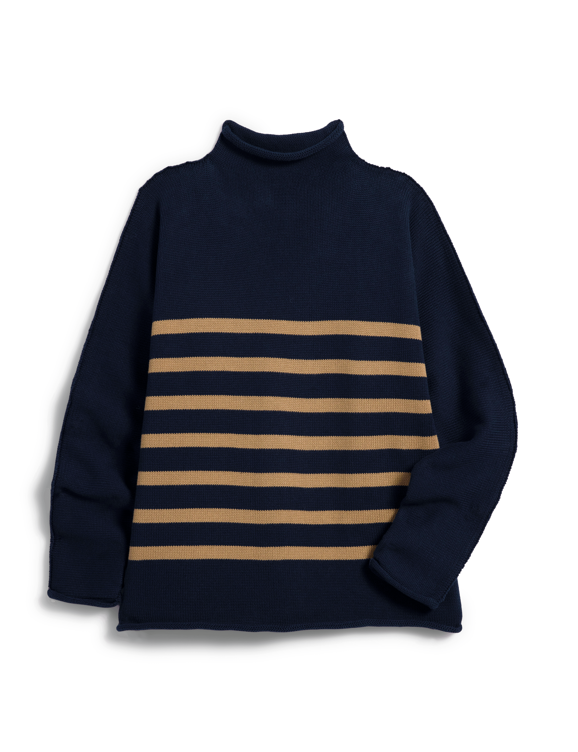 MONTEREY Navy with Camel Stripe, Pure Italian Cotton